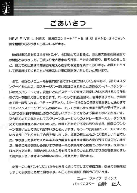 第8回:1994(平成6)年 8TH NEW FIVE LINES CONCERT ”BIG BAND SHOW”東大阪市立市民会館市民ホール